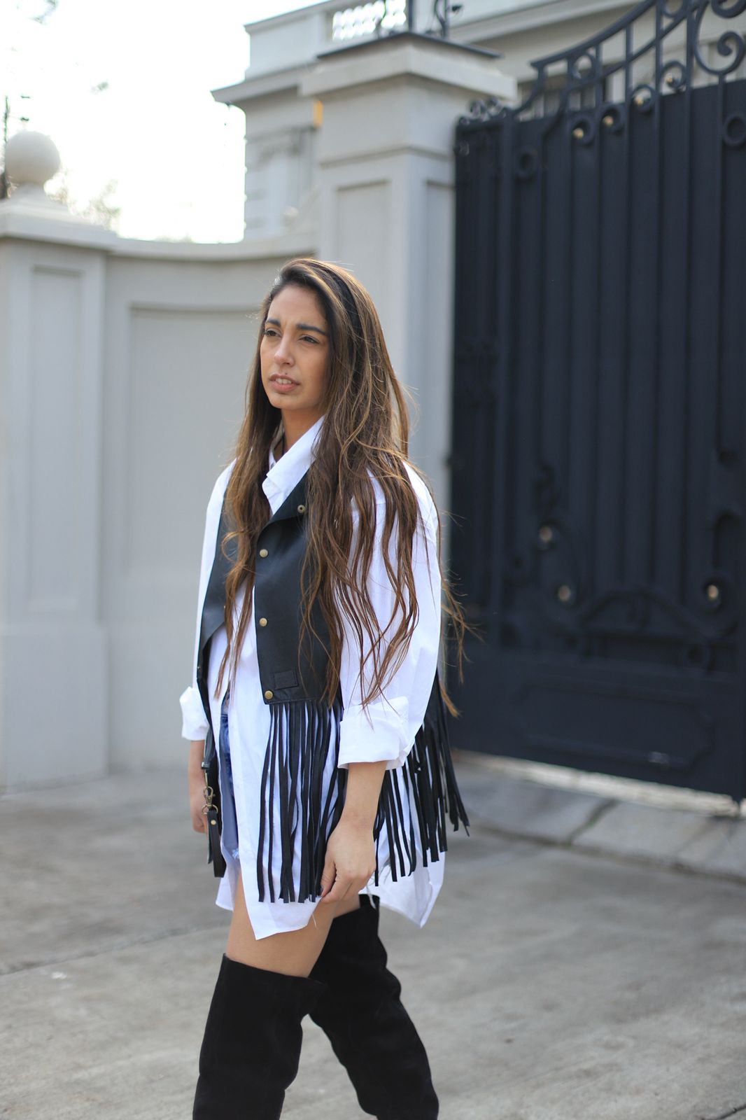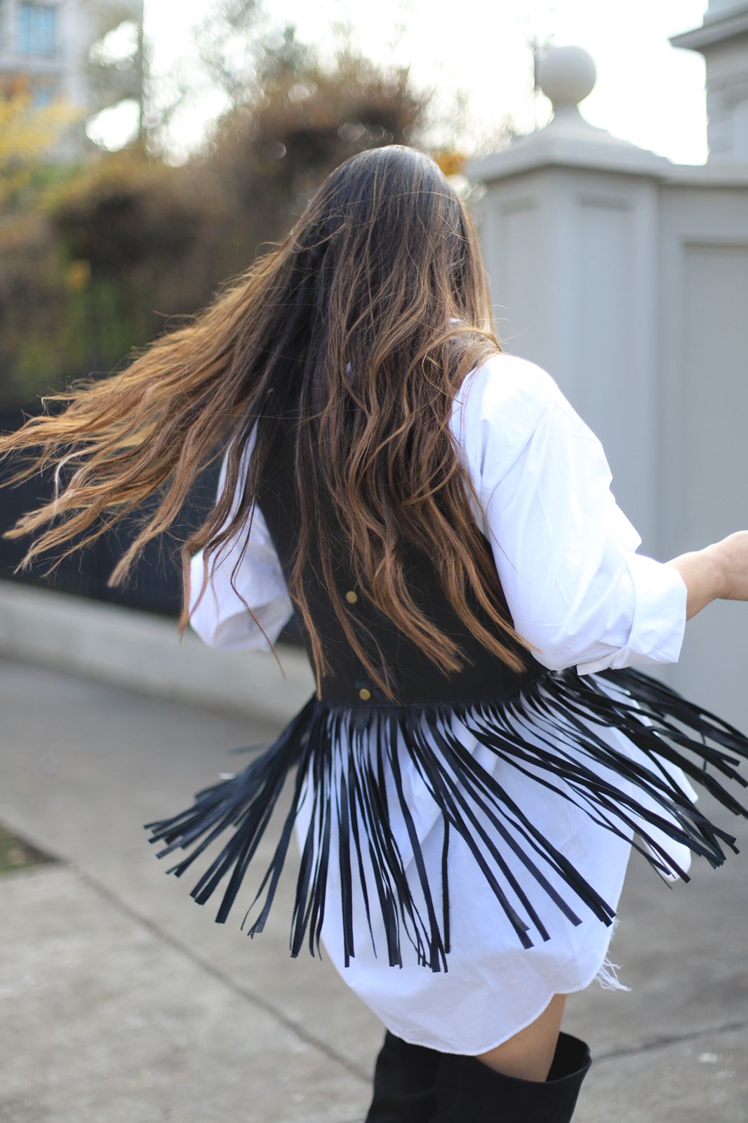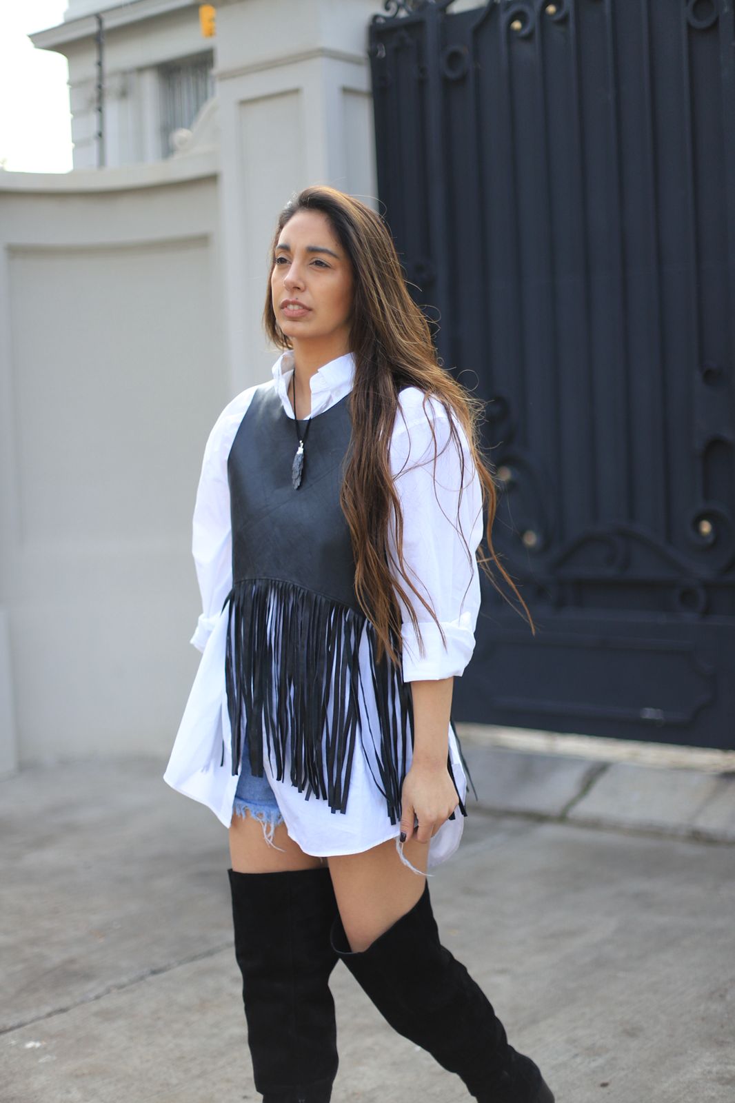 Chaleco de cuero con flecos, se puede usar de ambos lados.