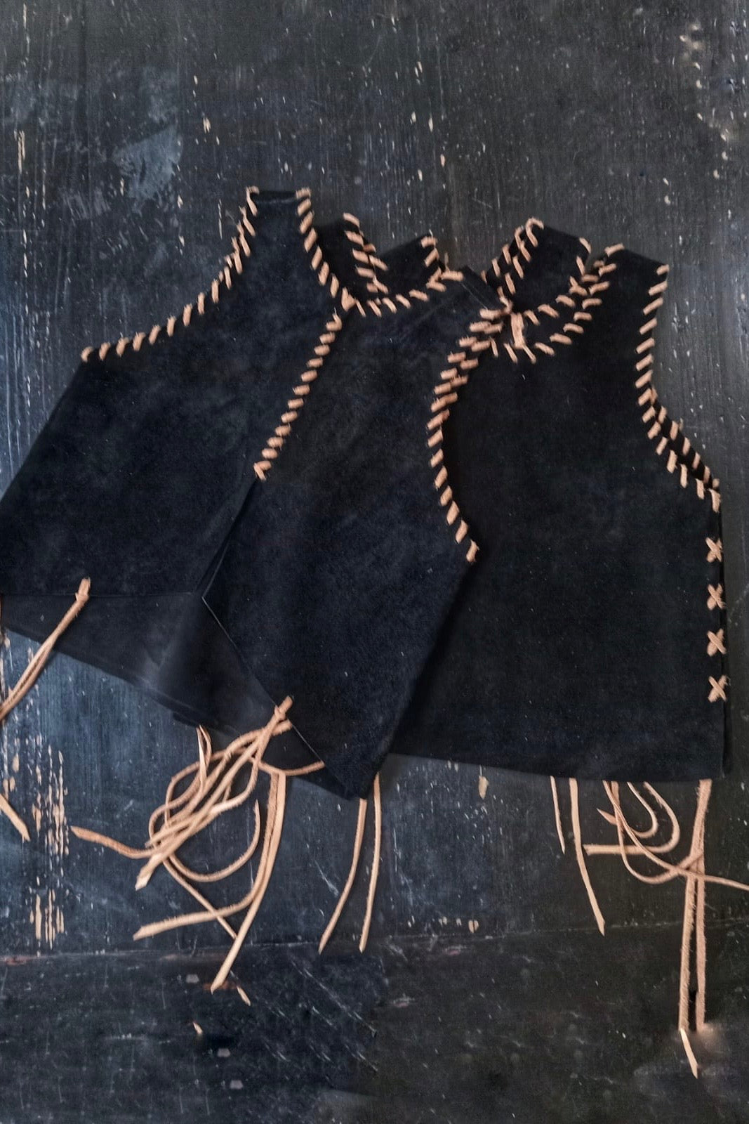 Top Gamuza Negro con tiento Camel. Detalles en la espalda!